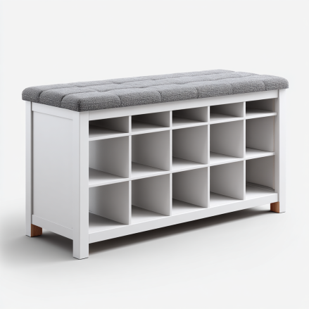 • Banc de rangement à chaussures avec 24 compartiments blanc et gris