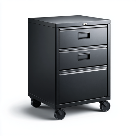• Caisson de rangement noir à trois tiroirs avec roulettes