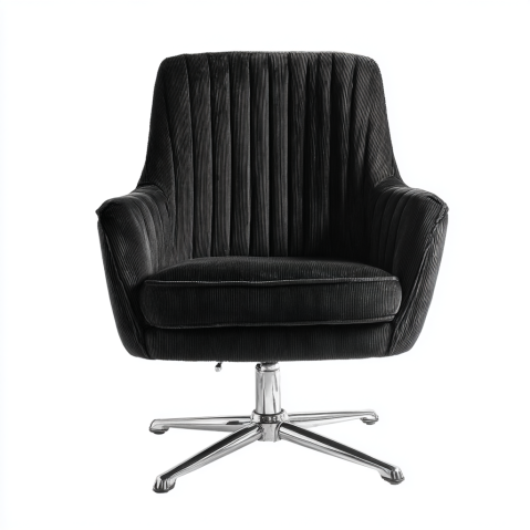 Chaise pivotante en velours côtelé noir avec pieds chromés