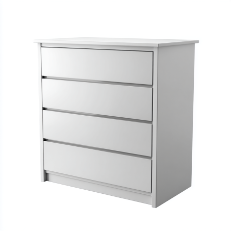 Commode blanche avec quatre grands tiroirs gris clair