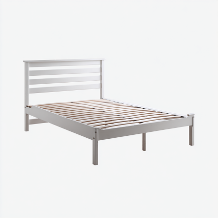 Lit Simple en Bois Blanc avec Lattes et Pieds Droits, Structure Classique