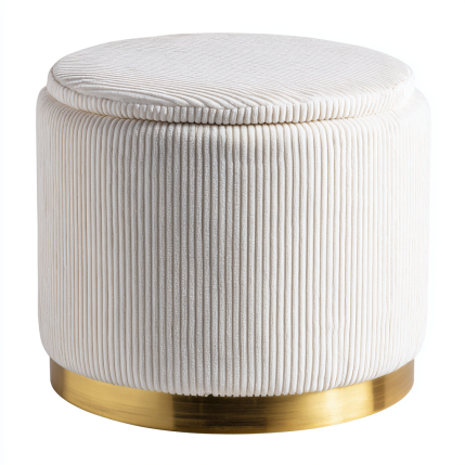 Tabouret Rond en Tissu Côtelé Ivoire avec Base Discrète